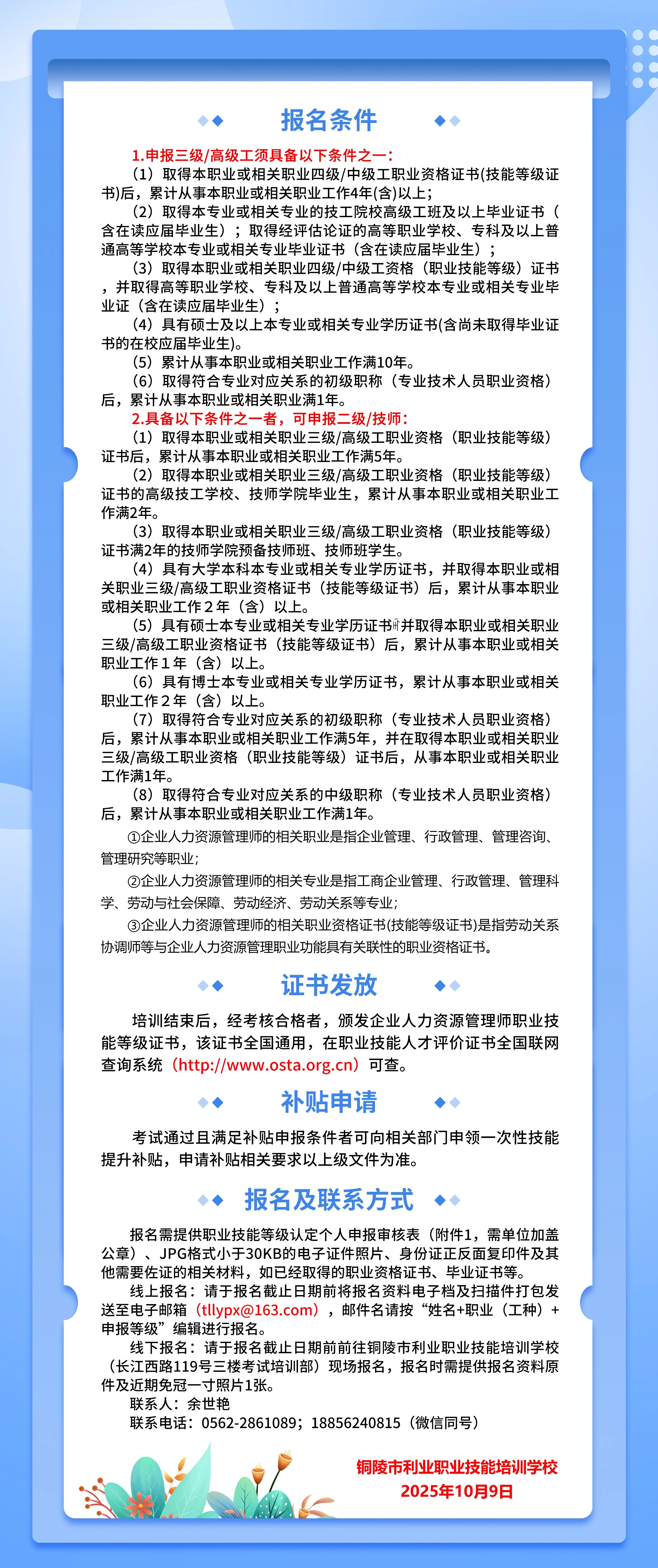 利业2025年第三期企业人力资源管理师考证报名开启!